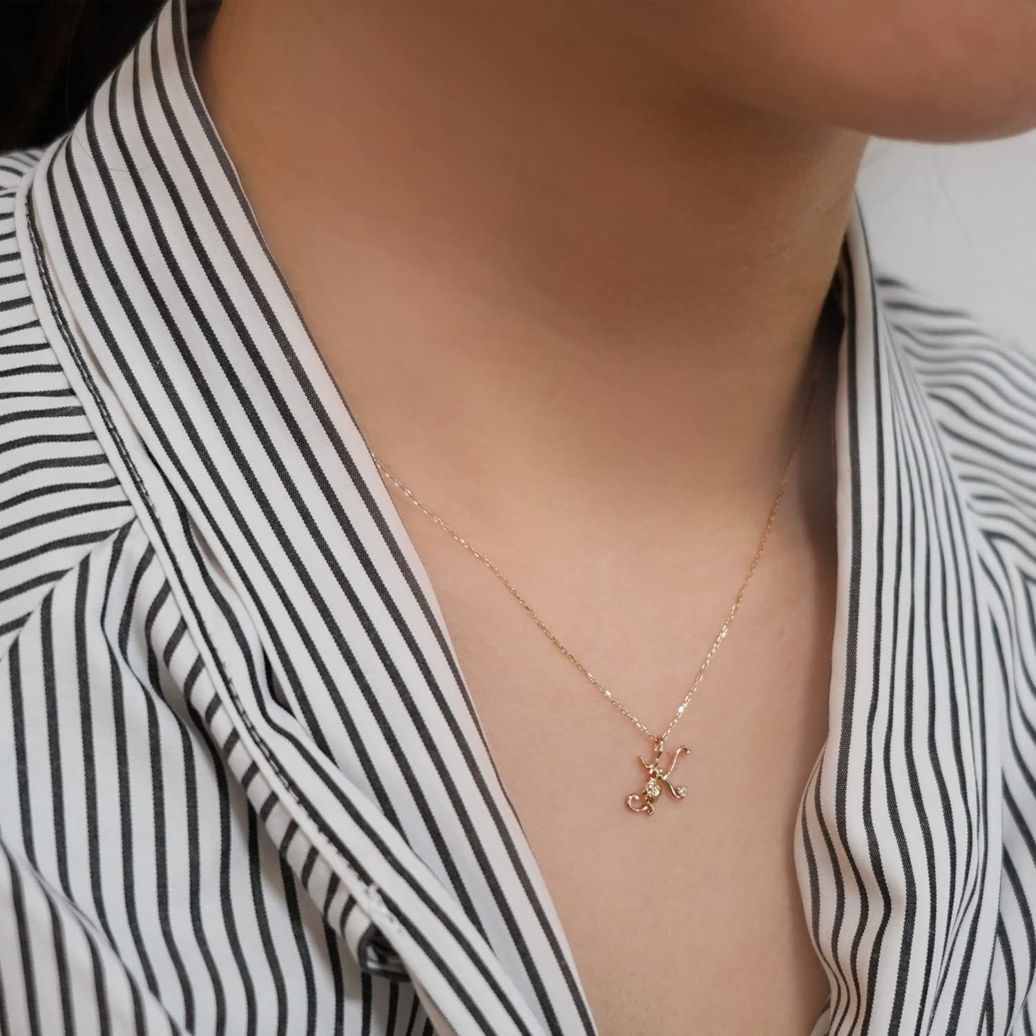 アルファベットに薔薇のモチーフをあしらったロマンティックな雰囲気のイニシャルペンダントです。繊細なラインが女性らしさを際立たせデコルテを華やかに彩ります。
