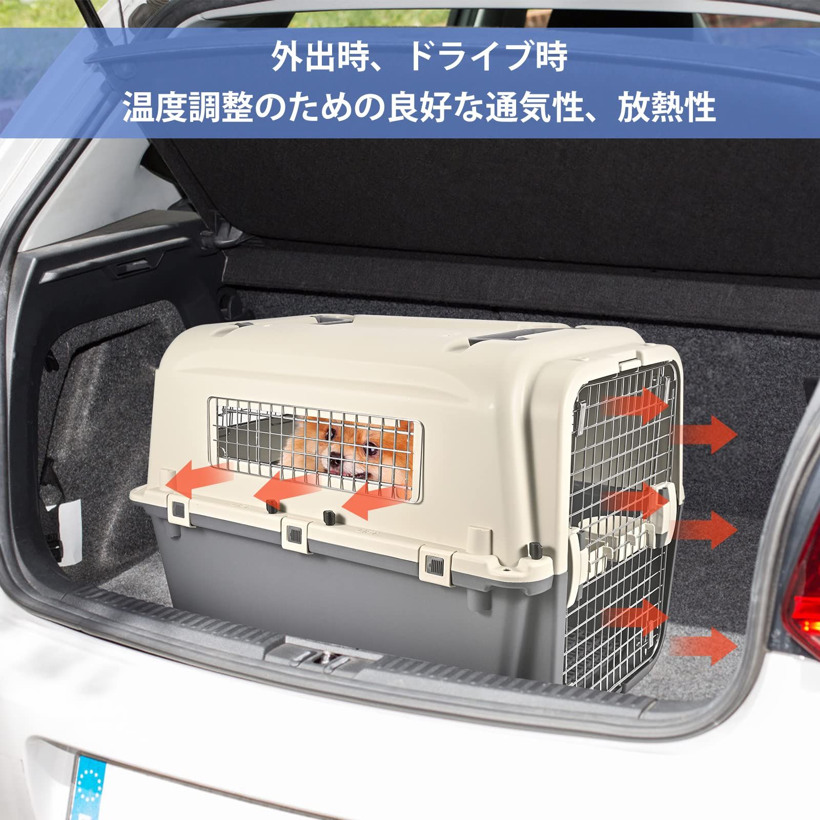 ペットキャリーケースキャスター付き取っ手付き 航空輸送対応ドッグケージ 通気性 換気 さびない ペット航空ケース 中大型犬用ハードクレート 組立簡単 洗えるド キャンピングキャリポータ ペットキャリー 外寸 幅80×奥46×高63 cm 重量 約 7.95 k
