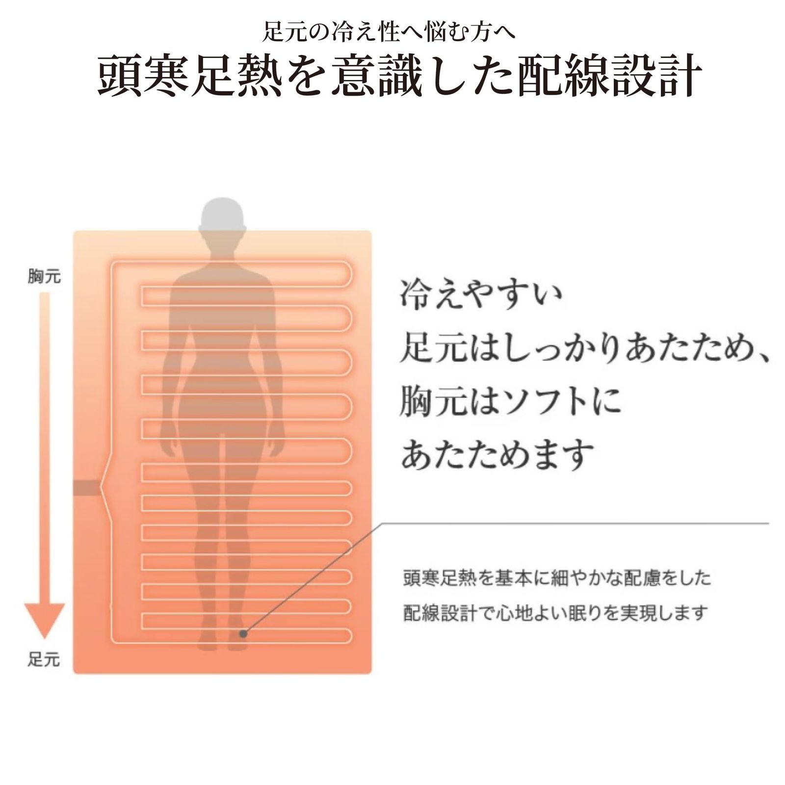 ○切り忘れても安心、自動OFFタイマー付き。(12時間自動OFF、任意6・4・2時間設定可能) ○操作しやすいスライド式温度調節。(暗い部屋でも見やすいバックライト付き) ○急に冷え込んでも快適、室温センサー内臓。(室温が約23℃以下になると、設定から自動で約3℃温度アップ) ○取扱説明書の記載手順に従いダニ退治ができます。 ○コントローラーを外して丸洗い可能。(洗濯ネットを使用して洗濯機でも洗えます。※ドラム式洗濯機、乾燥機はご使用できません。) ○頭寒足熱配線で足元はしっかり、胸元はソフトに身体を暖めます。○ご使用前に、必ず取扱説明書をよくお読みいただき、正しくお使いください。