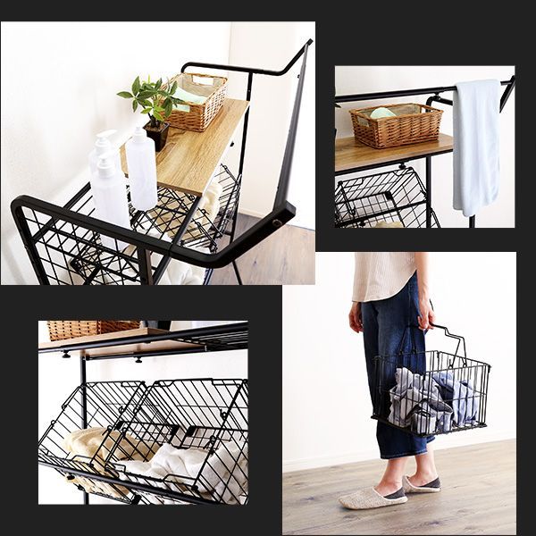 ランドリーラック バスケットタイプ 幅65~90 cm 洗濯 洗濯機 洗濯洗剤 ランドリー スペース すき間収納 ラック 棚