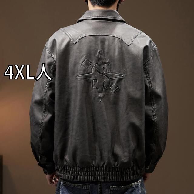 4 XL人 秋冬 コーデ メンズ 服 シンプル ファッション オシャレ 大人 かっこいい 大きいサイズ ストリート 紳士服 レトロ ライダース エコ レザー ジャケット PU