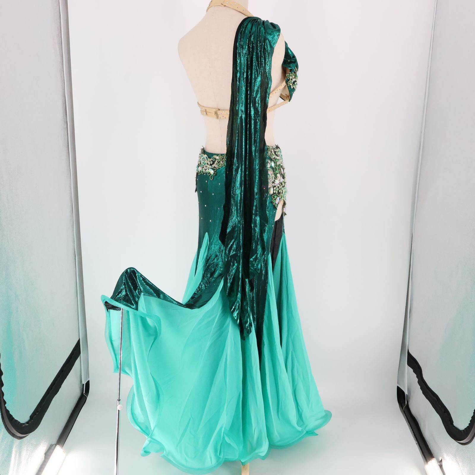 #ダンス衣装 #ダンスコスチューム #ステージ衣装 #新品 #新品 #ENUTSU #ベリーダンス #オリエンタル衣装 #グリーンコーデ #ラインストーン #花柄ドレス #フリルスカート #レースデザイン #光沢感 #エレガント #煌びやか #ゴージャス #爽やかカラー #大人っぽい #スリット入り #ダンスファッション