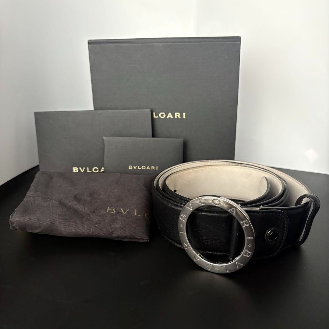 BVLGARI ブルガリ ロゴマニア レザー ベルト サークルロゴ ビーゼロ ブルガリブルガリ バックル 黒 ブラック き 44 110