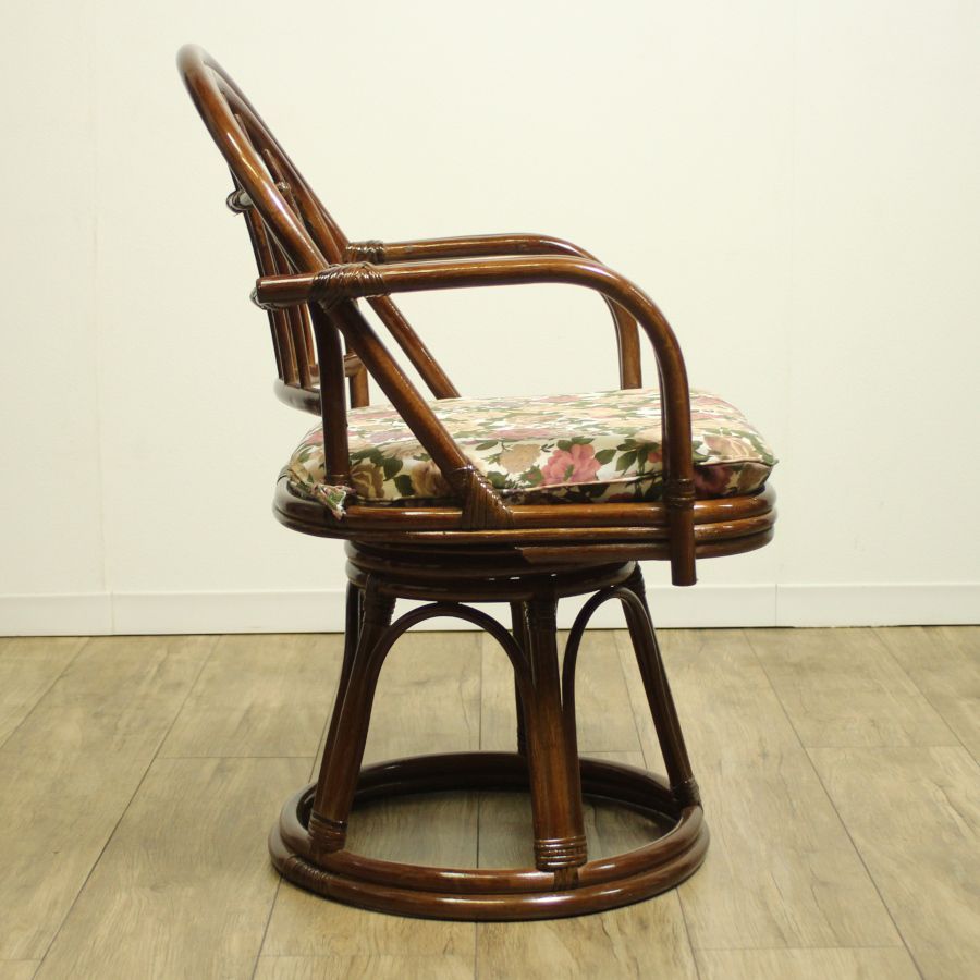 籐 ラタン 回転座椅子 ハイタイプ 座面高め 42 cm クッション花柄 座面回転 360度 籐製品 籐家具 籐の椅子 アームチェア リビング 居間 和室 洋室 IW-10 HWC